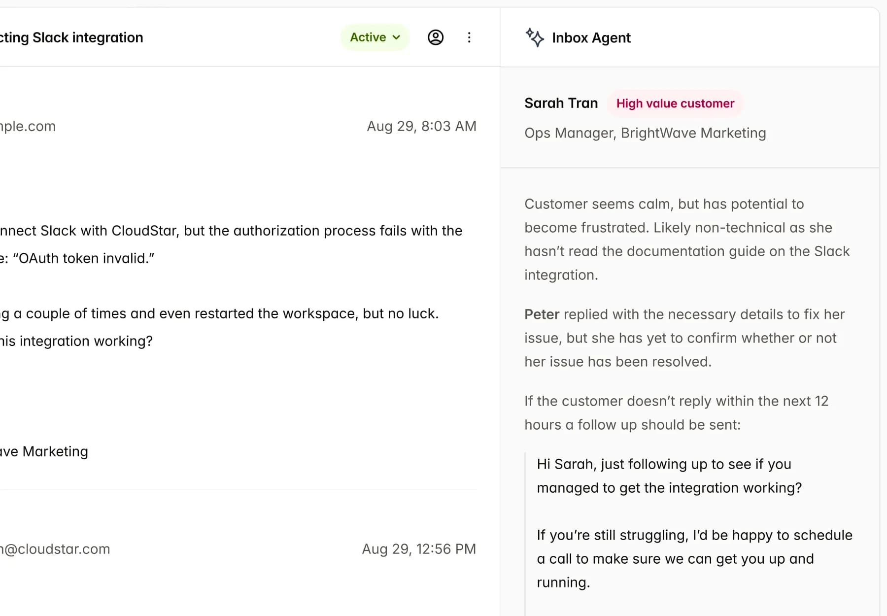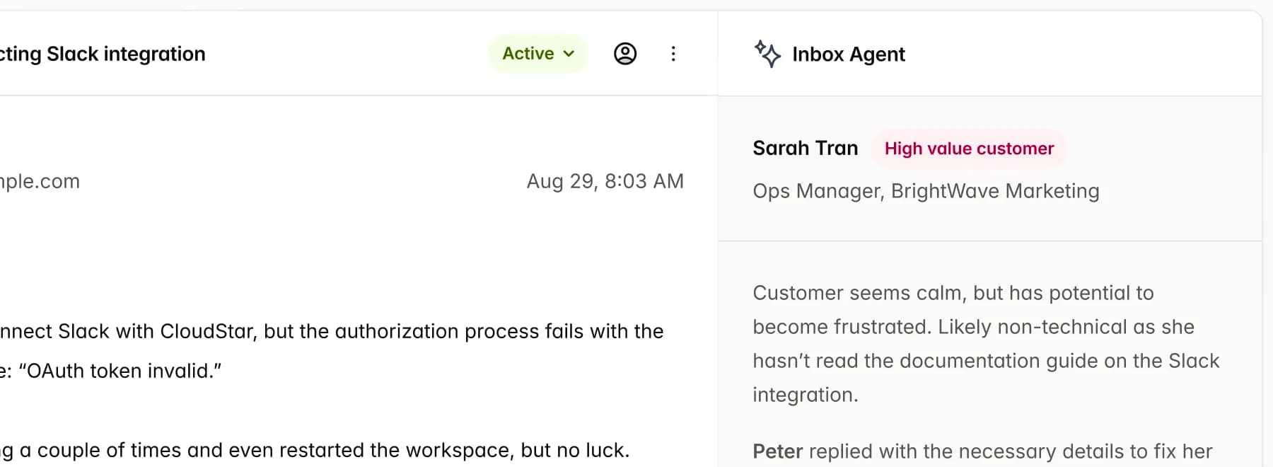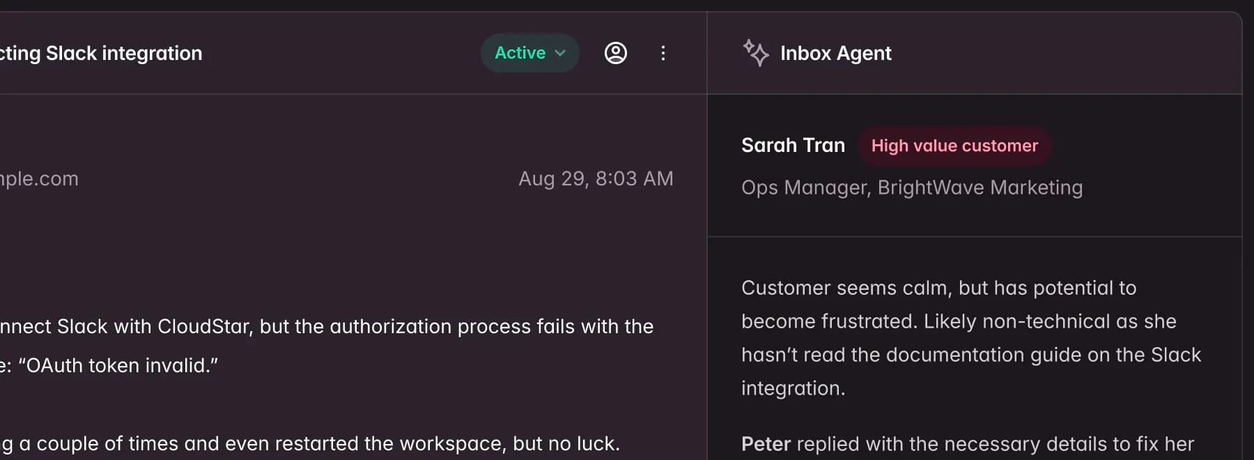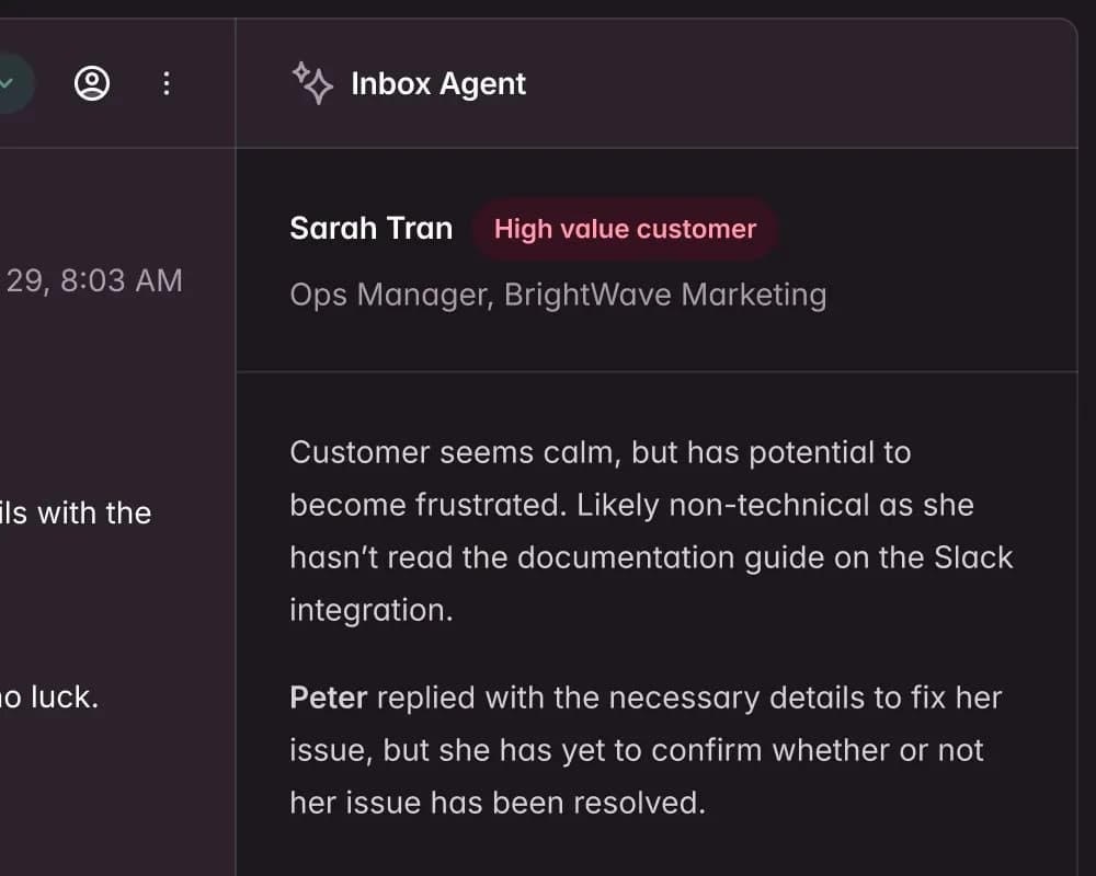 Get valuable context without having to read through your customer's long, angry email thread.