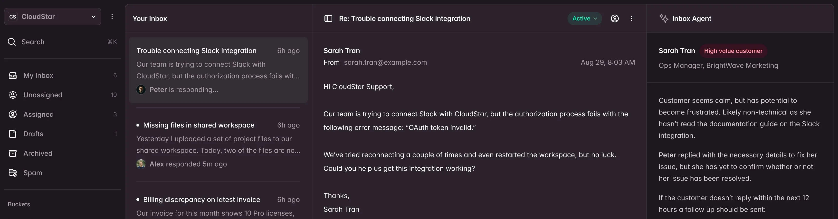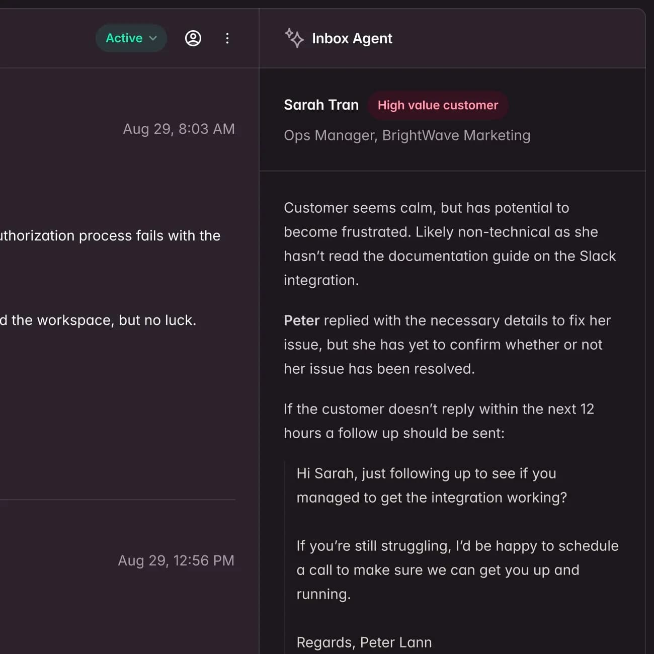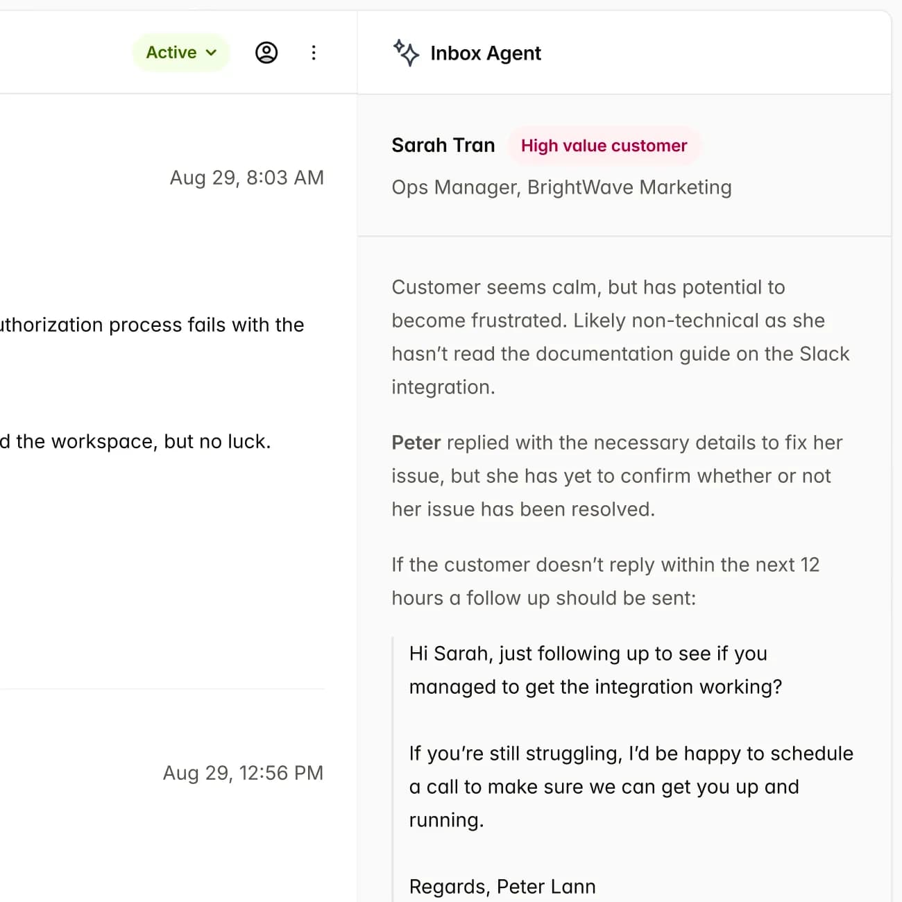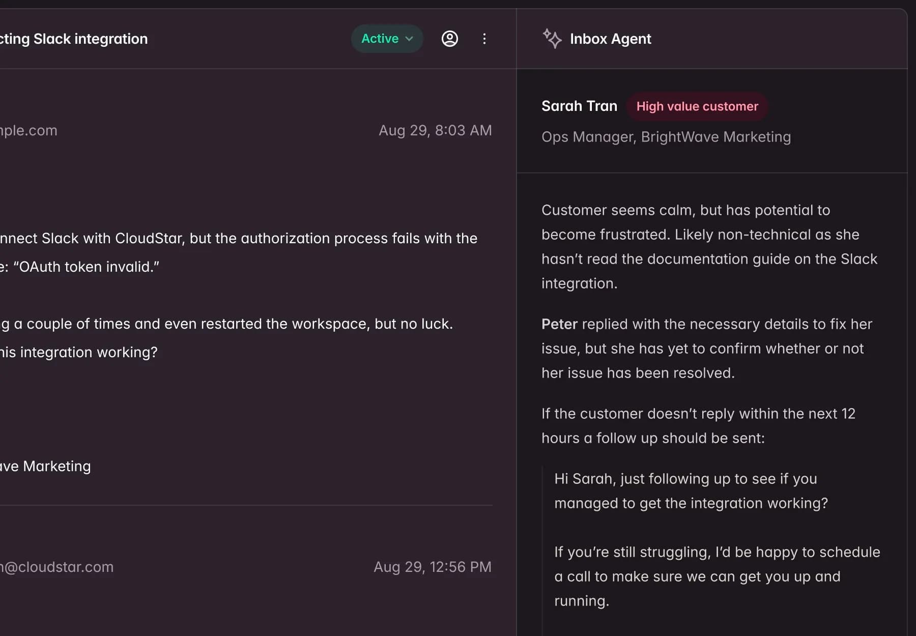 Get valuable context without having to read through your customer's long, angry email thread.